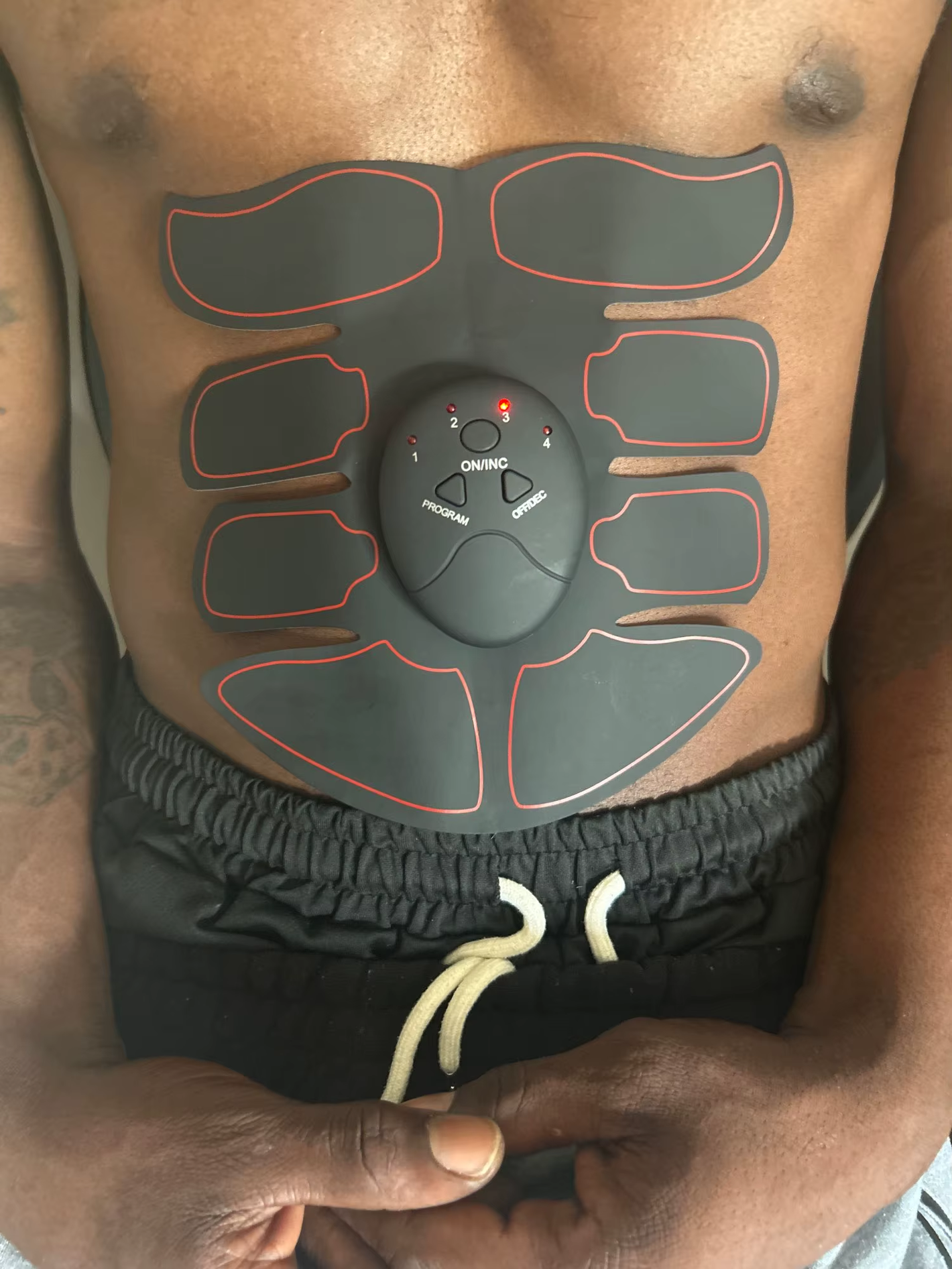Sí funciona, y se nota. El Power ABS usa tecnología EMS aprobada por profesionales para activar fibras profundas del abdomen y brazos — las mismas que casi no trabajás ni haciendo 200 abdominales.